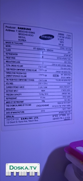 Объявление № 70192039 Категория: Бытовые приборы Подкатегория: Холодильник Регион: Север Израиля Город: Хайфа Фирма: Samsung модель: RT-59MBPN Сколько использовалось?: 6