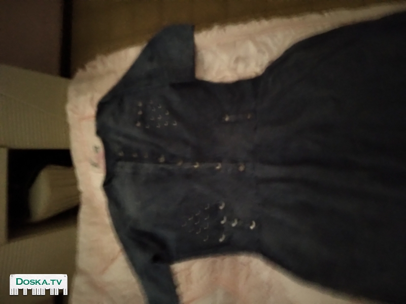 Джинсовое платье. Синее размер L рукав 3/4 длина чуть ниже колена.размер 48. На пуговицах до ниже талии ,заклёпки,карманы. Для желающих пришлю фото на ваттсапп. (Сюда не удалось)