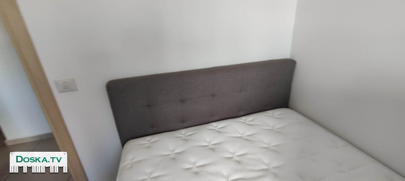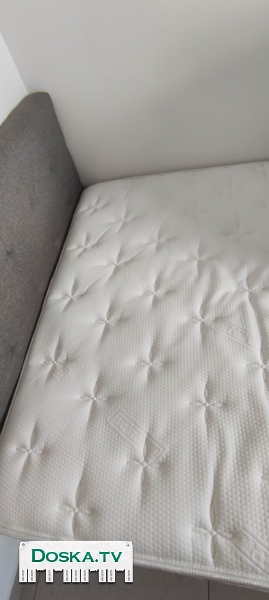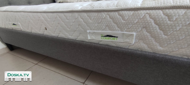 Двуспальная кровать 190*140 см, обитая тканью, с дизайнерским изголовьем, модель Art Eretz, производство: Малайзия, основание из массива дерева, обивка из тканого полиэстерового материала, длина 205 см, ширина 145 см, высота изголовья 97 см. Возможна покупка кровати с отличным ортопедическим матрасом от Dr. Comfort, подобранным по размерам. Стоимость кровати, включая матрас, составляет 3400 шекелей. Цена договорная.